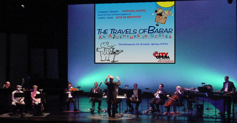 Set to delight audiences young, old and in-between, composer Raphael Mostel is preparing to bring a new production of his celebrated “Travels of Babar” multi-media experience to New York next week. Based on Jean de Brunhoff’s famous picture book of the same name, “Le Voyage de Babar,” Mostel has crafted a score to be played by eight musicians in time with projected illustrations.