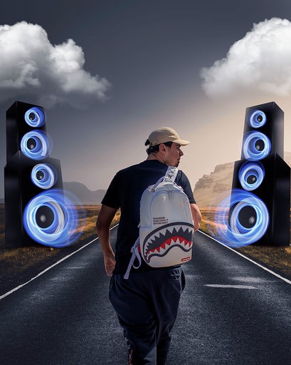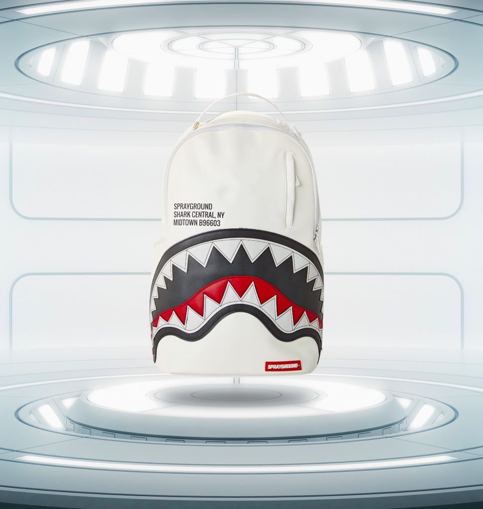 Announced today, the two create a line of sleek, useful bags for DJs and music enthusiasts. Solving the issues of bag space for laptop and music equipment. Designed with the signature Spraygorund shark’s mouth imprint, the line is made of all white vegan leather and includes an inside laptop pocket large enough for a 17-inch screen (which is what most DJs carry) and zip pockets for external hard drives and thumb drives.