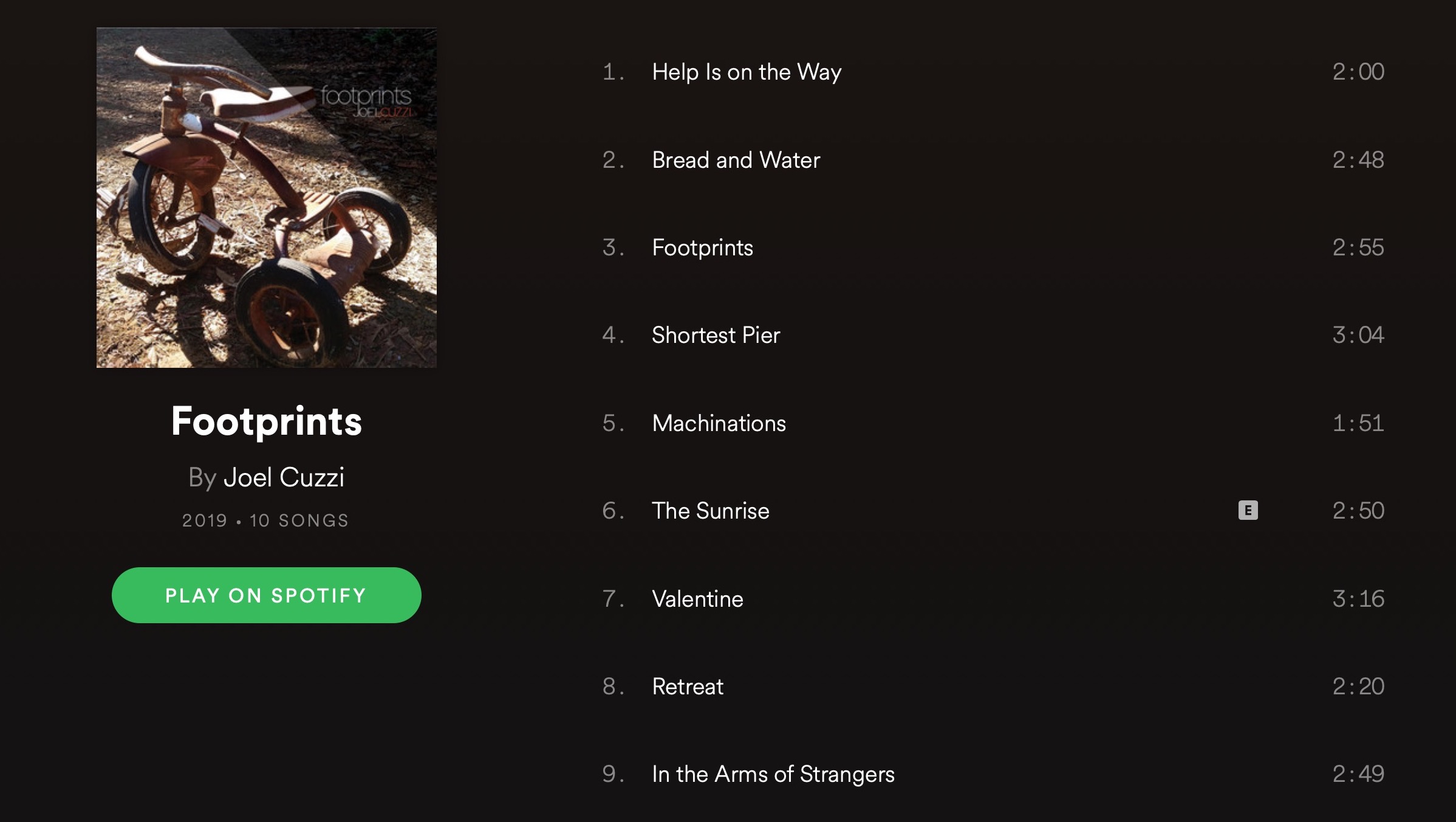 Joel Cuzzi takes a punk approach and has obviously been influenced by that sound in his simple but emotional new album, Footprints.