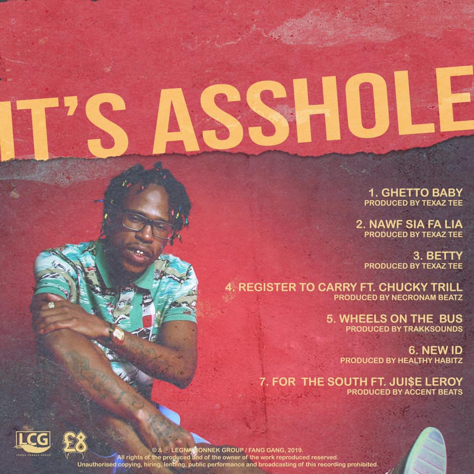 Along with “Betty,” the album also includes new hits “Wheels on the Bus” and “Register to Carry.” Also featuring guest appearances by Chunky Trill and fellow LegnaConnekGroup artist Jui$e Leroy, It’s Asshole is available to stream everywhere via LegnaConnekGroup/FangGang Records.
