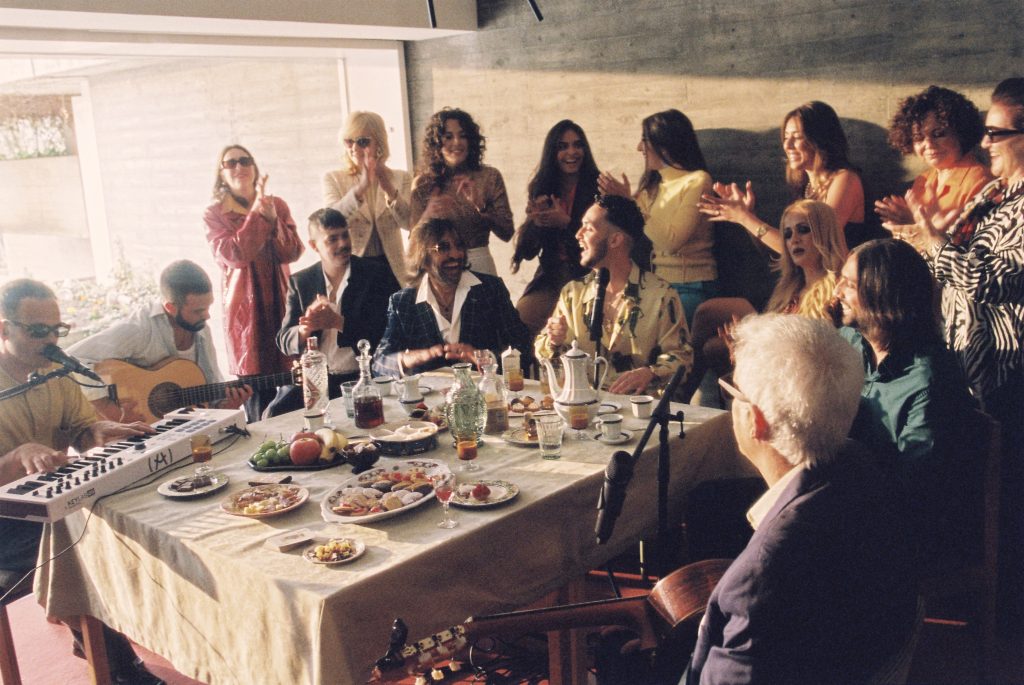 It’s a late afternoon performance in a Madrid living room with the improvised energy of a family and friend gathering. In a time with limited travel or live shows, Tangana says he wanted to evoke feelings of camaraderie and warmth. He is joined by his regular collaborators Alizzz and Victor Martinez, his mother Patri and aunt Pilar plus friends and collaborators. Additional performers include: rumba legend Kiko Veneno, flamenco-pop icon La Húngara and avant-garde cantaor Niño de Elche.